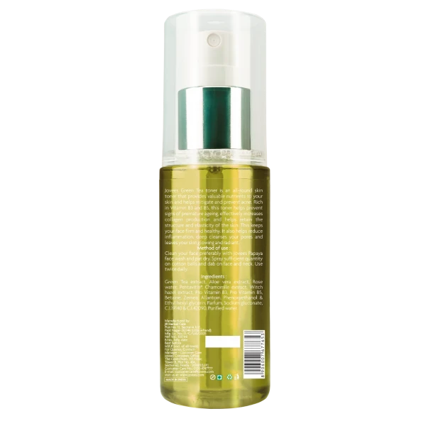 Jovees Green Tea toner is an all-round skin toner that provides valuable nutrients to your skin and helps mitigate and prevent acne. Rich in Vitamin B3 and B5, this toner helps prevent signs of premature ageing, effectively increases collagen production and helps retain the structure and elasticity of the skin. This keeps your face firm and healthy. It also helps reduce inflammation, deep cleanses your pores and leaves your skin glowing and radiant.